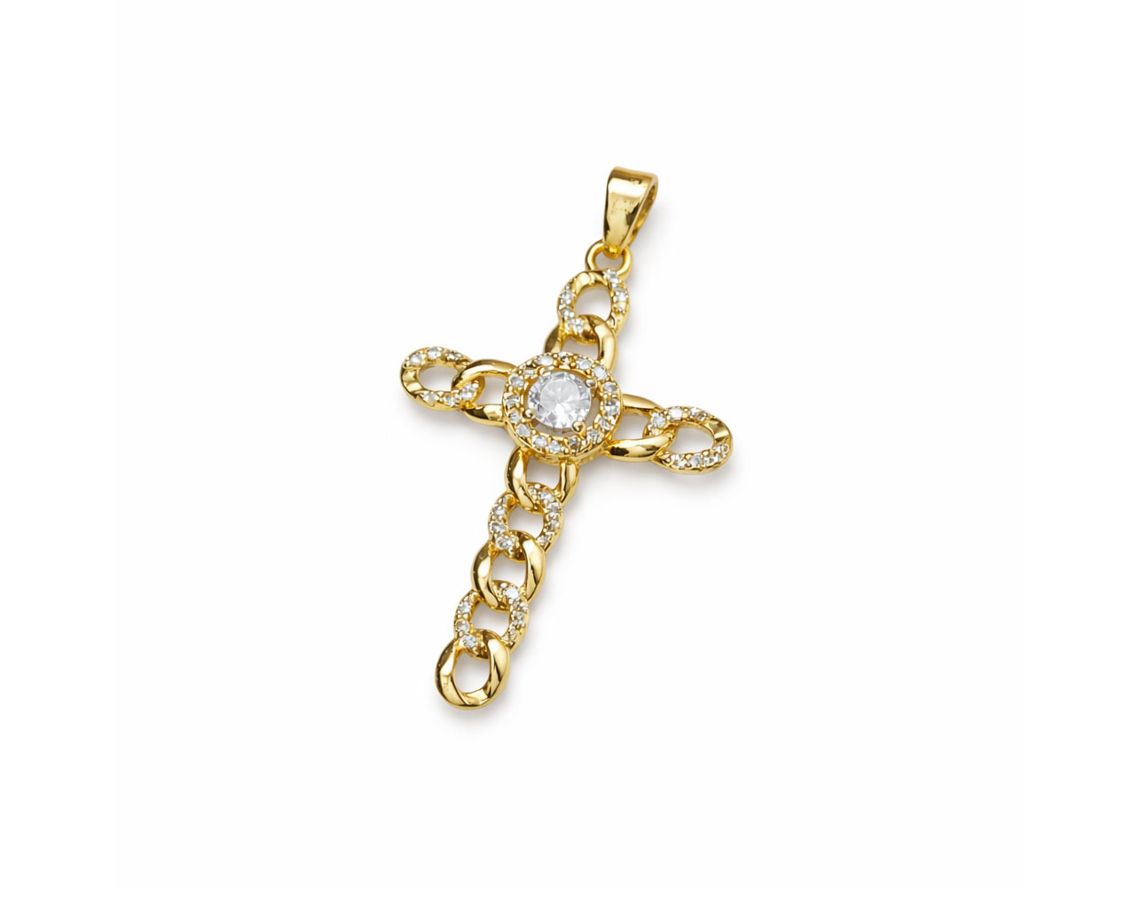 Подвеска "Крест-цепь" с микроинкрустацией /позолоченная, 22*40 мм/