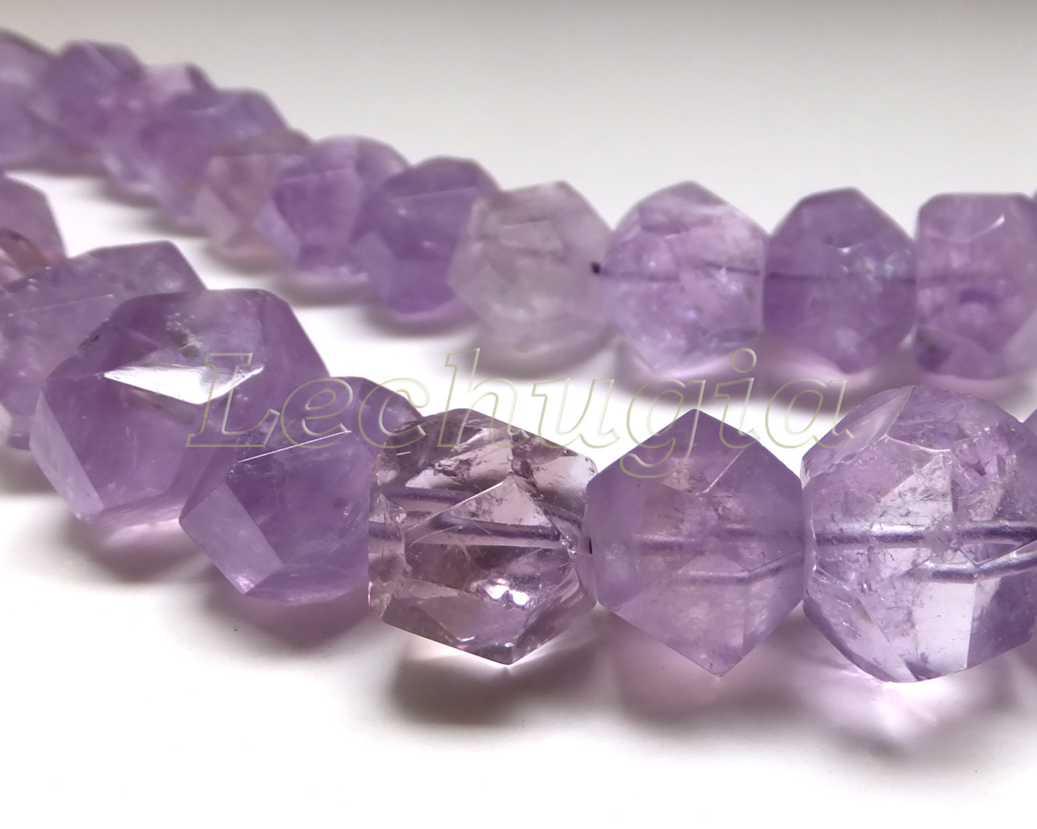 Бусины натурального аметиста "лаванда" свободной формы диаметром от 15 до 18 мм.