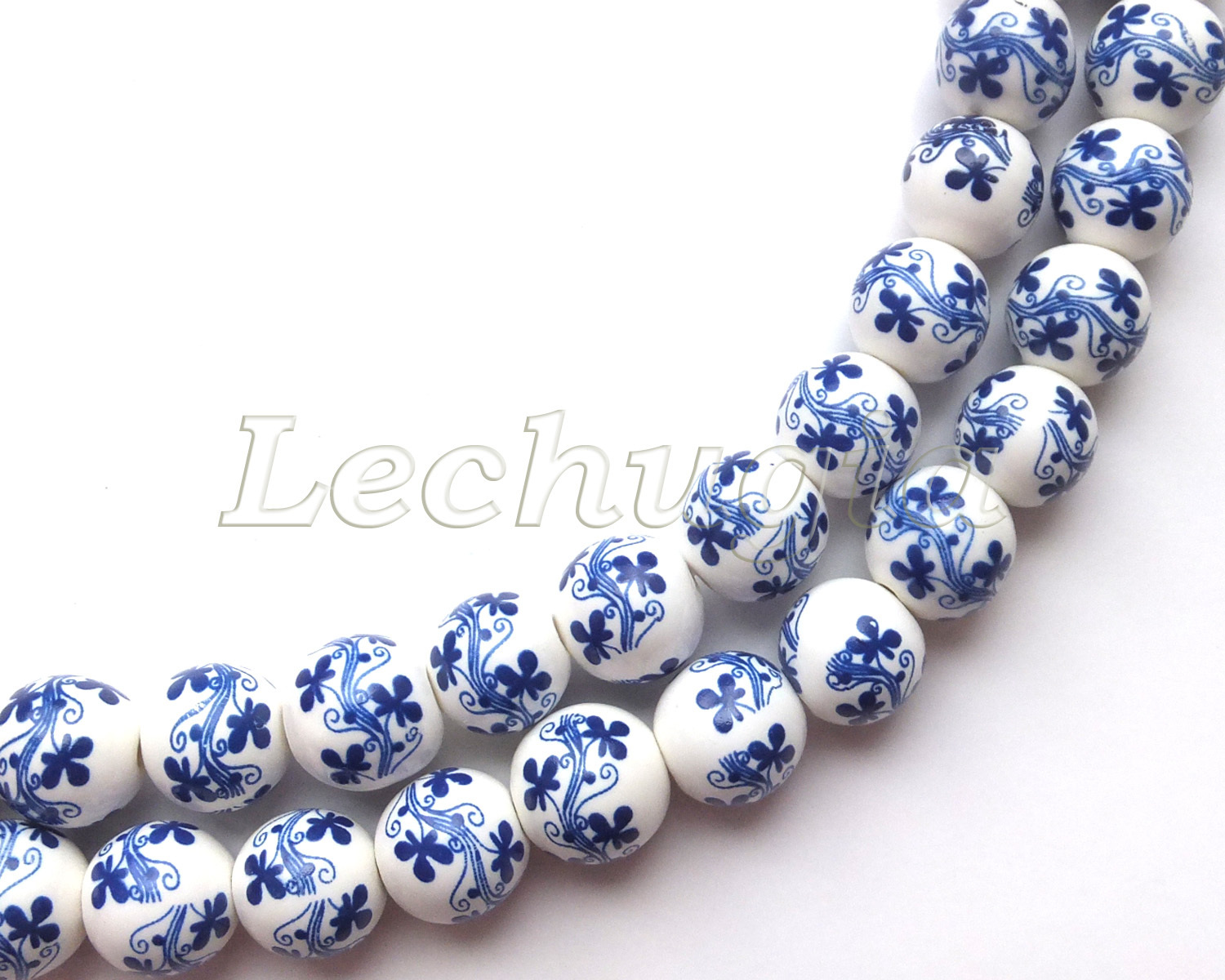 Бусина керамическая с принтом "гжель" /шарик, 12 мм/