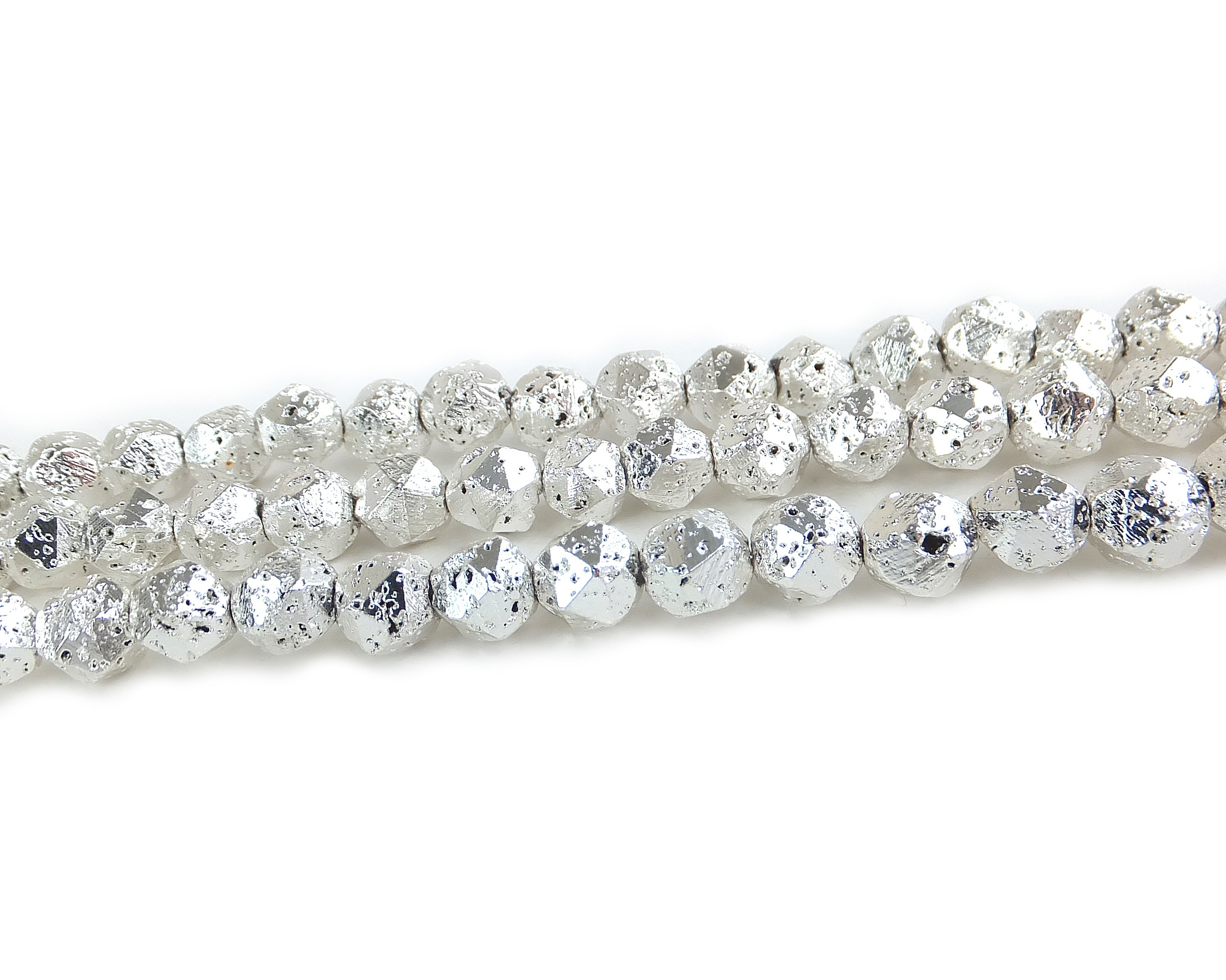 Лава черная посеребренная гранёная /шарик, 8 мм/