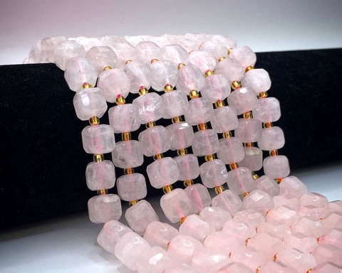 Бусины природного розового кварца с красивой огранкой для создания premium украшений.