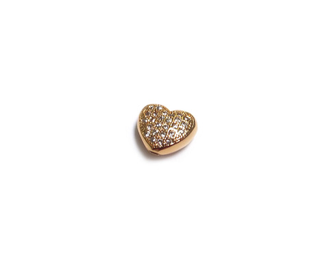 Бусина "Сердечко" инкрустированная цирконами /золотистая, 8*9 мм/