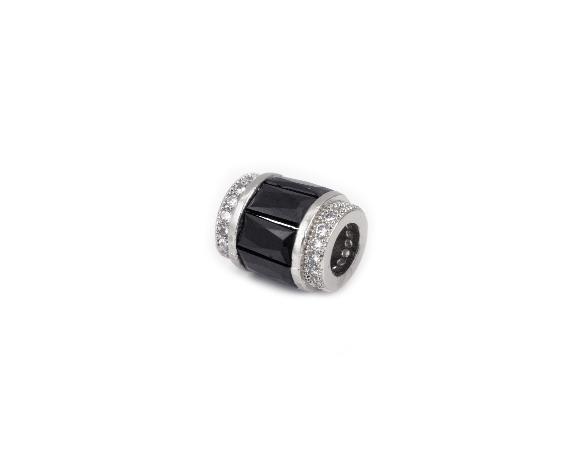 Бусина инкрустированная чёрными цирконами /серебристая, 9*12 мм/