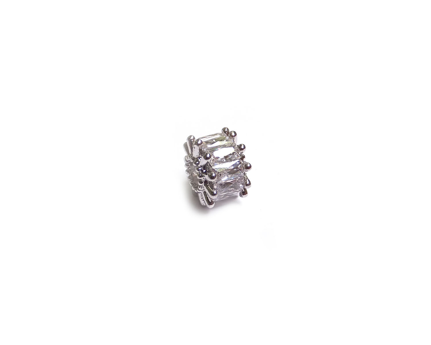 Бусина инкрустированная мелкими цирконами с высококачественной ювелирной огранкой. Каждый кристалл закреплен застежкой микропаве. Покрытие родированное. Не окисляется и не подвержено потемнению.