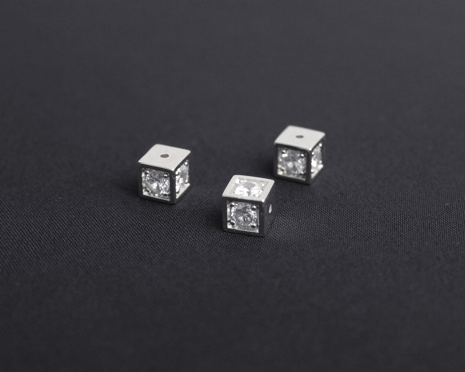 Бусина-кубик инкрустированная цирконами /куб, серебристая, 6.5*7 мм/