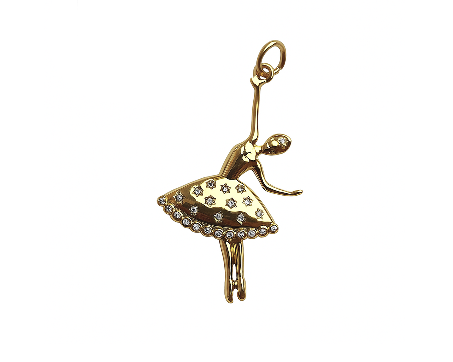 Подвеска "Балерина" с микроинкрустацией /позолоченная, 36 мм/