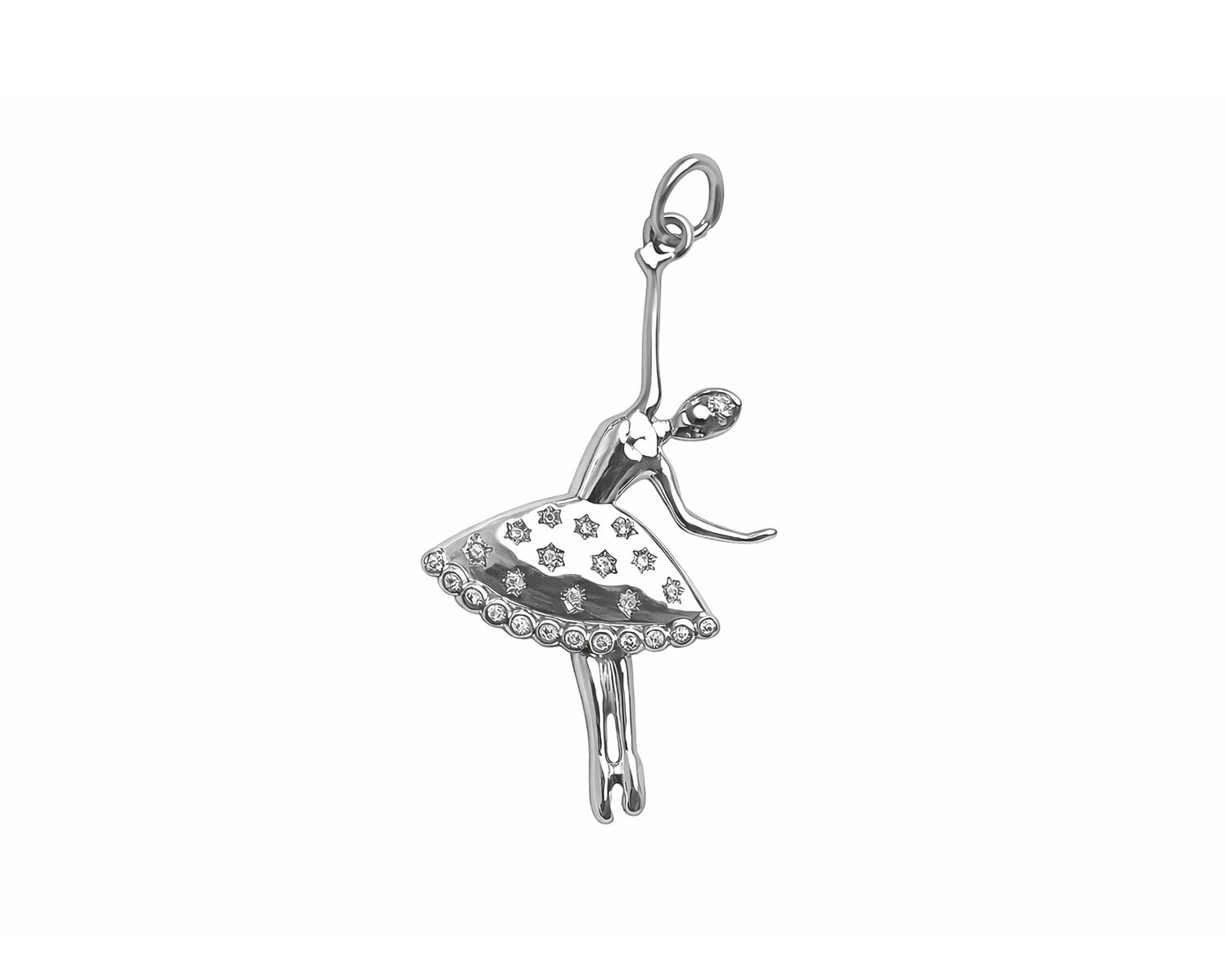 Подвеска "Балерина" с микроинкрустацией /серебристая, 36 мм/