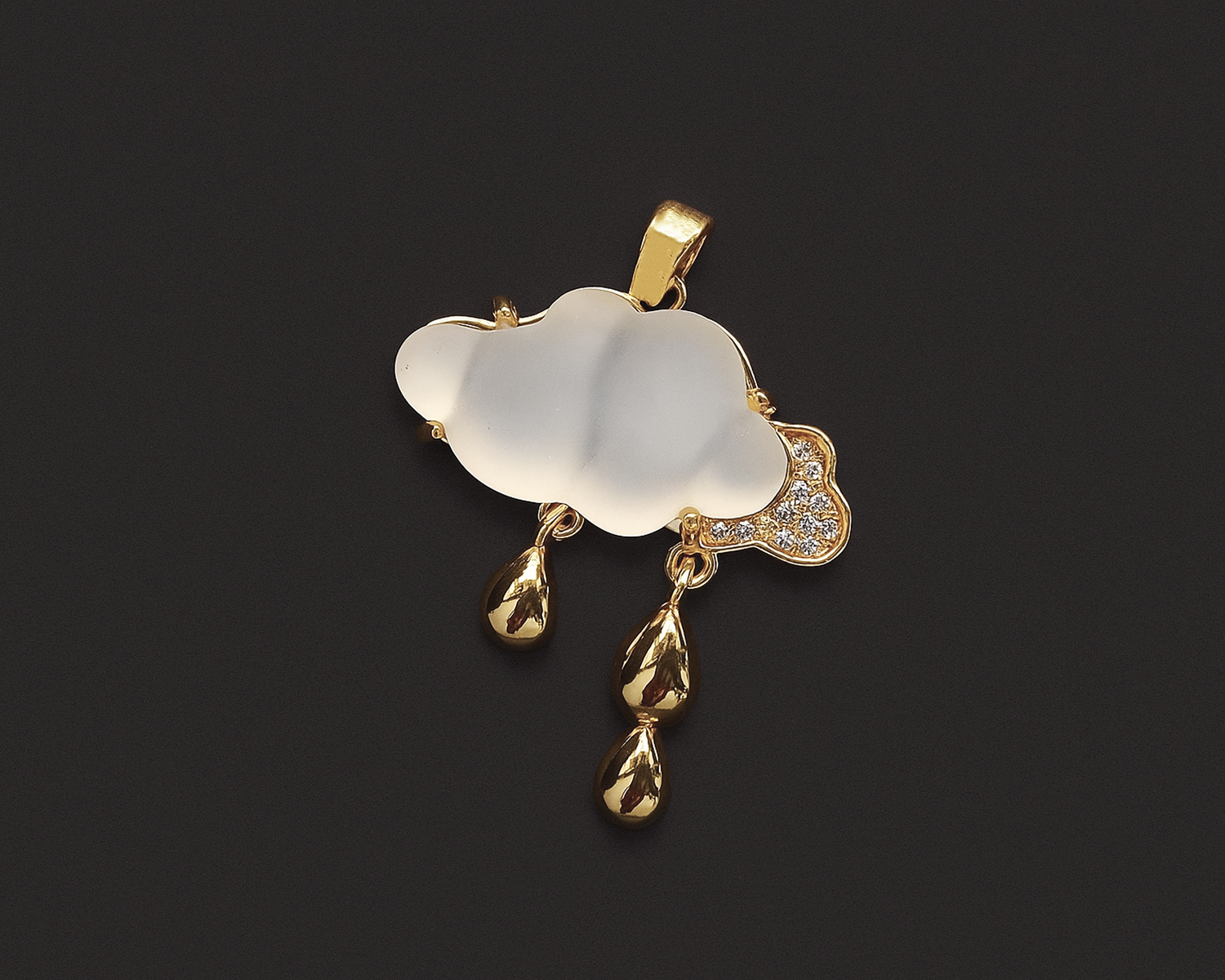 Подвеска "Дождь" инкрустированная фианитами с перламутром /позолоченная, 24*28 мм/