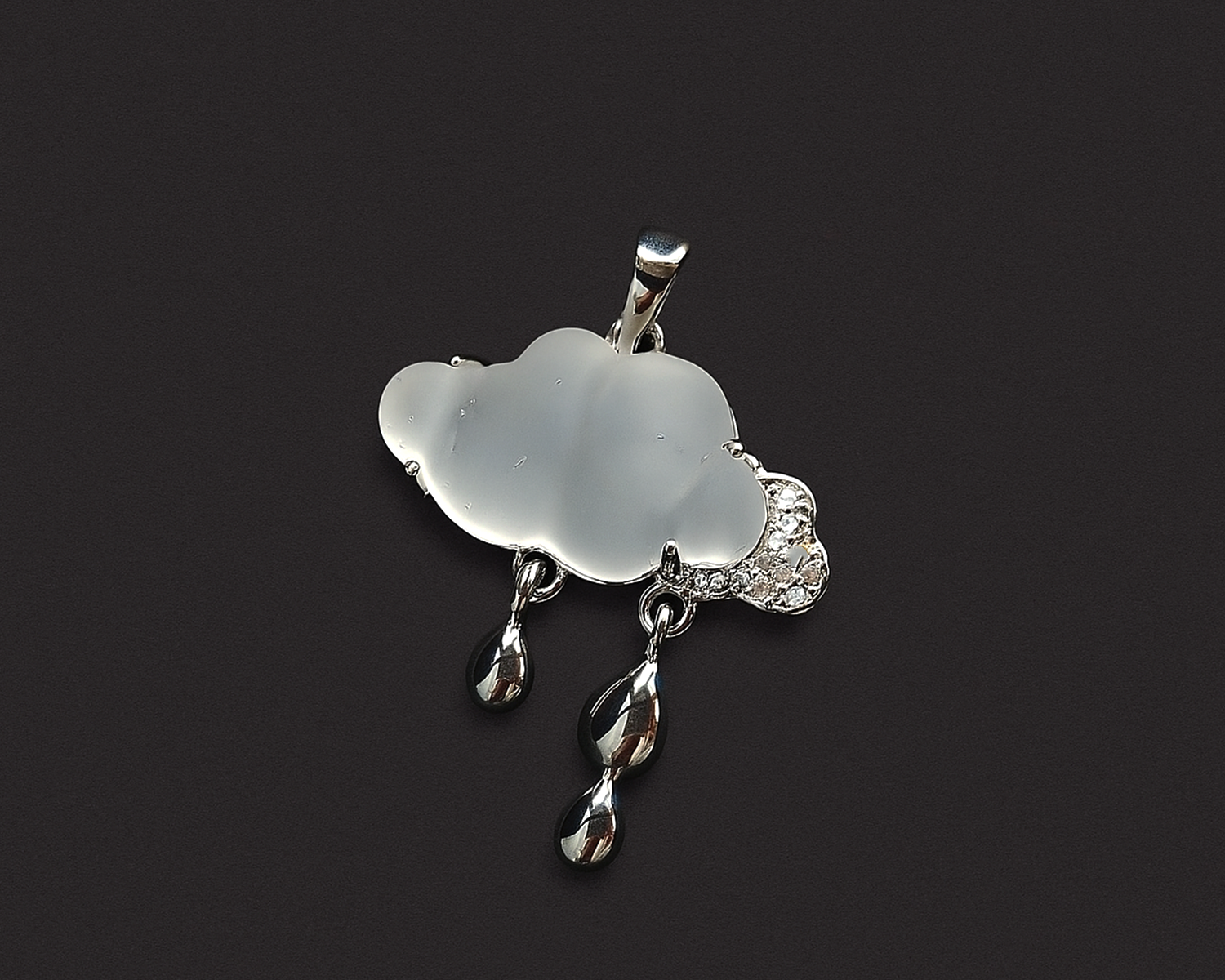 Подвеска "Дождь" инкрустированная фианитами с перламутром /серебристая, 24*28 мм/
