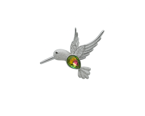 Подвеска "Колибри" с кристаллом /серебристая, 24*25 мм/