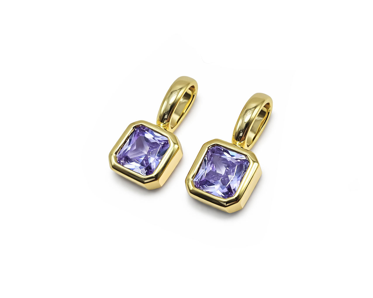 Подвеска квадратная с аметист. кристаллом /позолоченная, 7*15 мм/