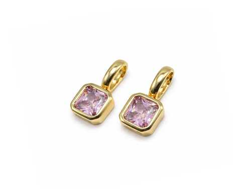 Подвеска квадратная с розовым кристаллом /позолоченная, 7*15 мм/