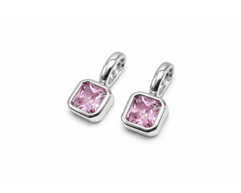 Подвеска квадратная с розовым кристаллом /серебристая, 7*15 мм/