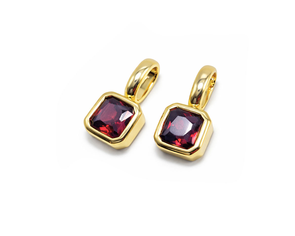 Подвеска квадратная с рубин. кристаллом /позолоченная, 7*15 мм/