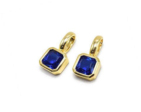 Подвеска квадратная с сапфир. кристаллом /позолоченная, 7*15 мм/