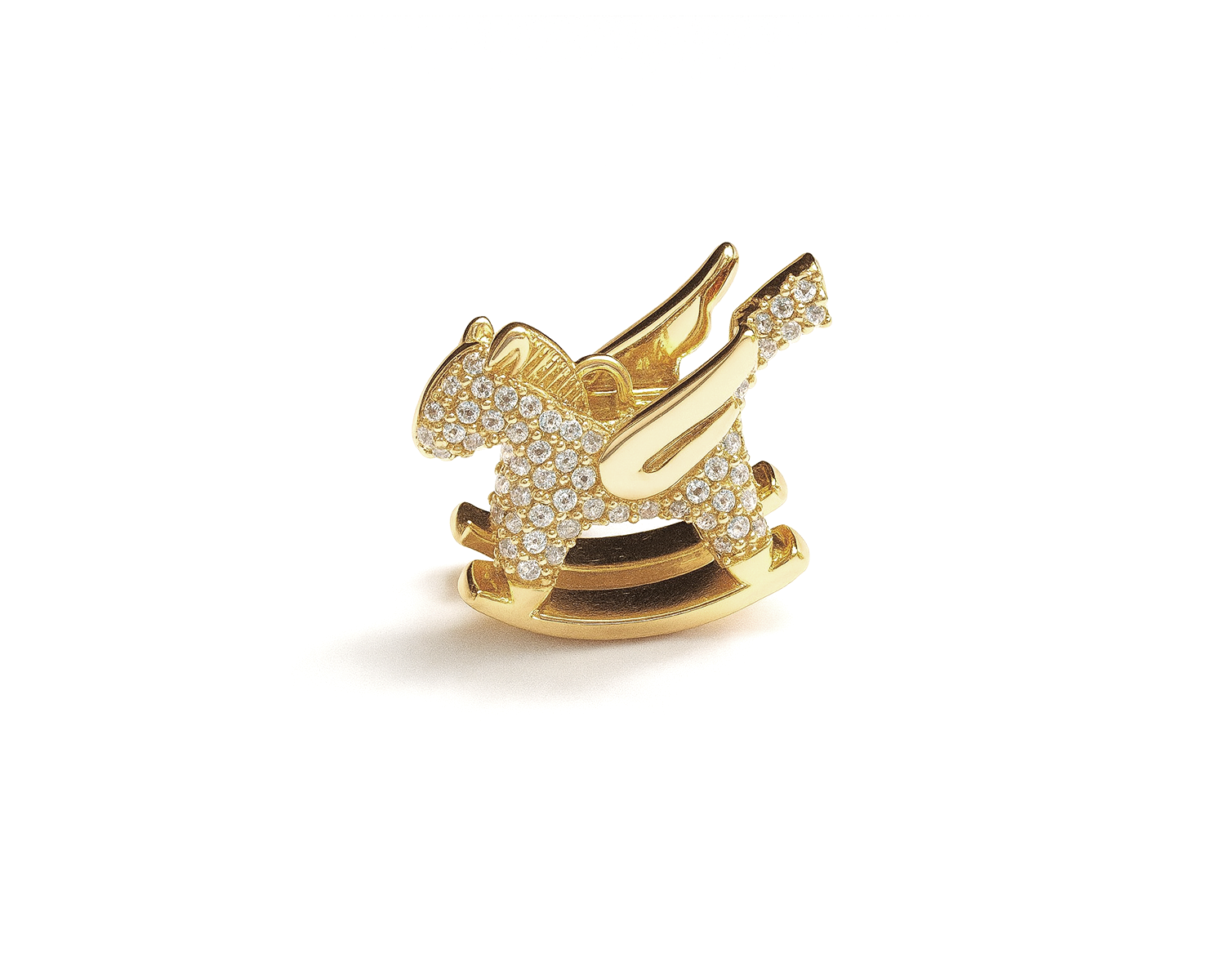 Подвеска "Лошадка-качалка" с микроинкрустацией /позолоченная, 13*16 мм/