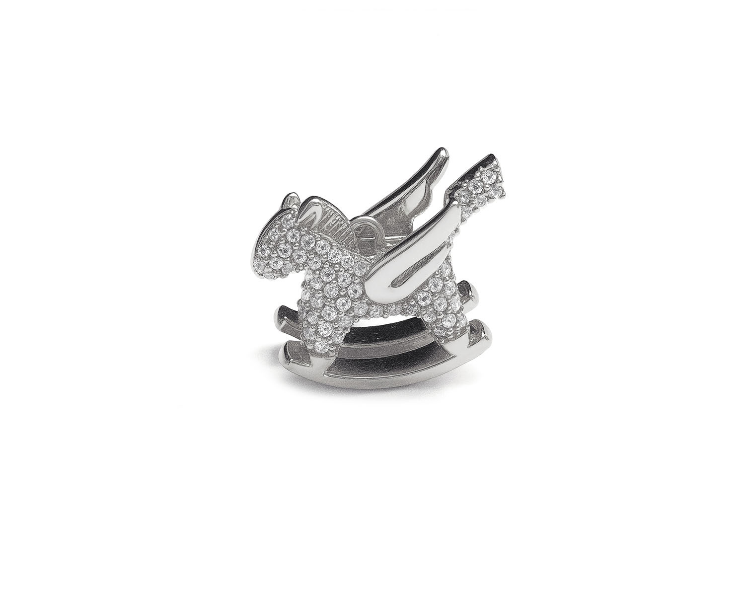 Подвеска "Лошадка-качалка" с микроинкрустацией /серебристая, 13*16 мм/