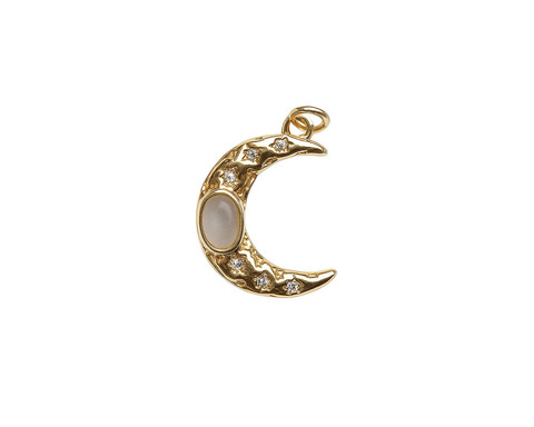 Подвеска "Месяц" инкрустированная фианитами с перламутром /позолоченная, 15*20 мм/