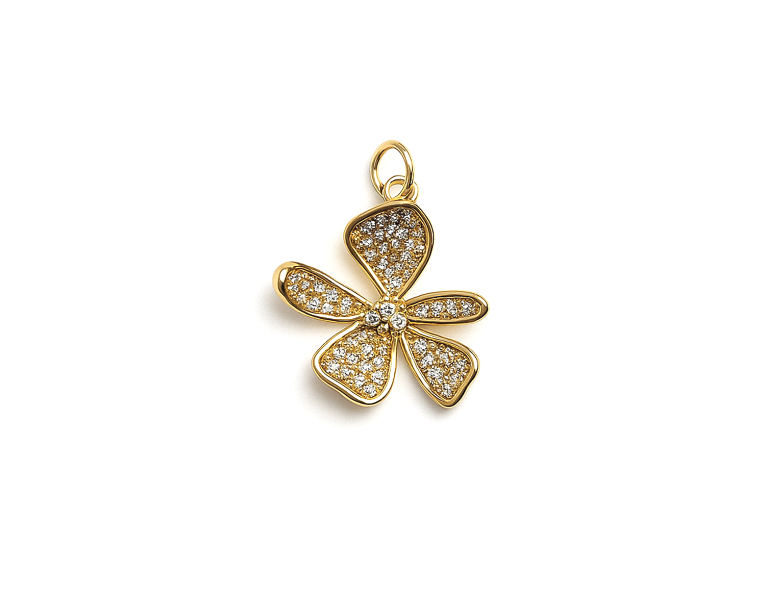Подвеска "Олеандр" с микроинкрустацией /позолоченная, 17*18 мм/