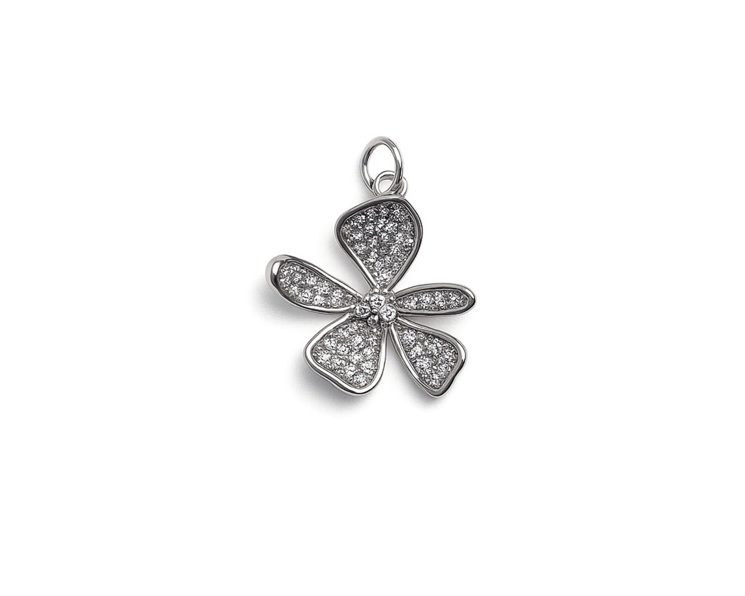 Подвеска "Олеандр" с микроинкрустацией /серебристая, 17*18 мм/