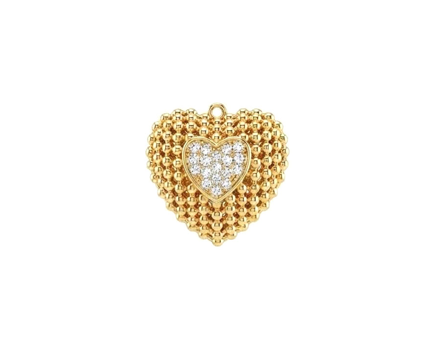 Подвеска "Сердце" объемная с микроинкрустацией /позолоченная, 22*22 мм/
