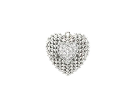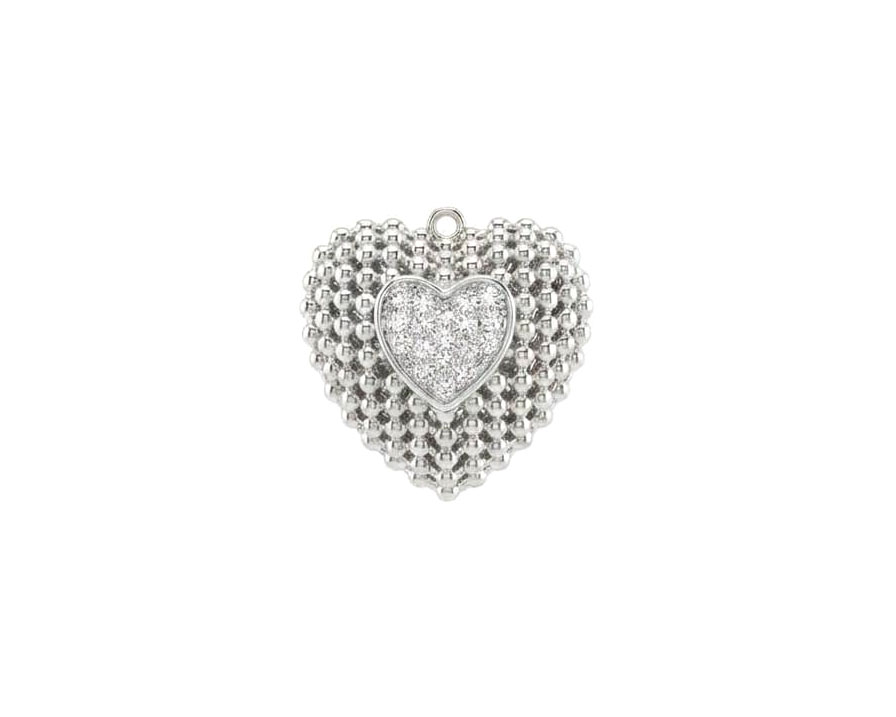Подвеска "Сердце" объемная с микроинкрустацией /серебристая, 22*22 мм/