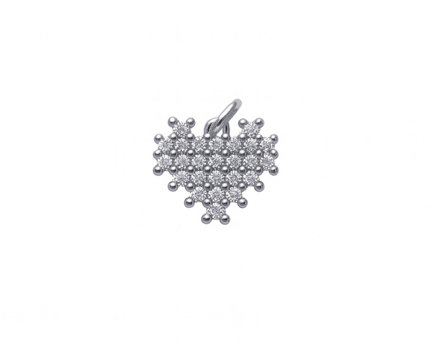 Подвеска "Сердце Pixel" с микроинкрустацией /серебристая, 10*12 мм/