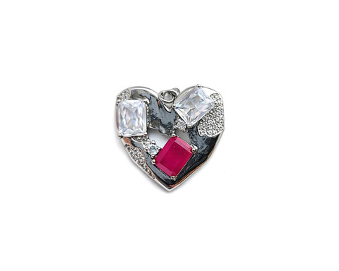 Подвеска "Сердце" с рубин. микроинкрустацией /серебристая, 24*25 мм/