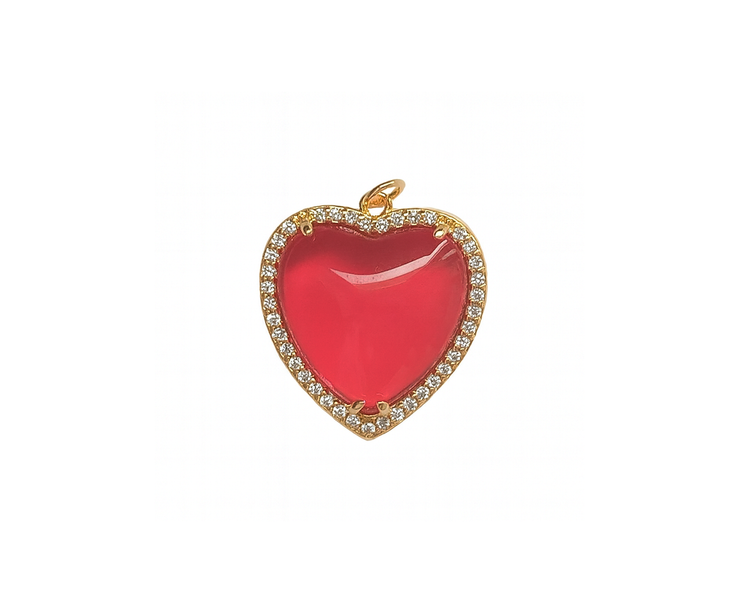 Подвеска "Сердце" красная с микроинкрустацией /позолоченная, 25*27 мм/