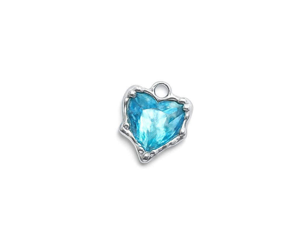 Подвеска "Сердце тающее" бирюзовая с кристаллом /серебристая, 12*14 мм/