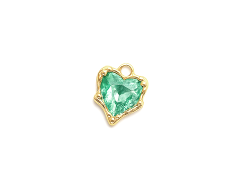 Подвеска "Сердце тающее" мятное с кристаллом /позолоченная, 12*14 мм/