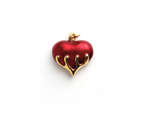 Подвеска "Сердце жрицы" красная эмаль /позолоченная, 19*20 мм/