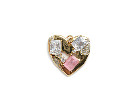 Подвеска "Сердце"с розовой микроинкрустацией /позолоченная, 24*25 мм/
