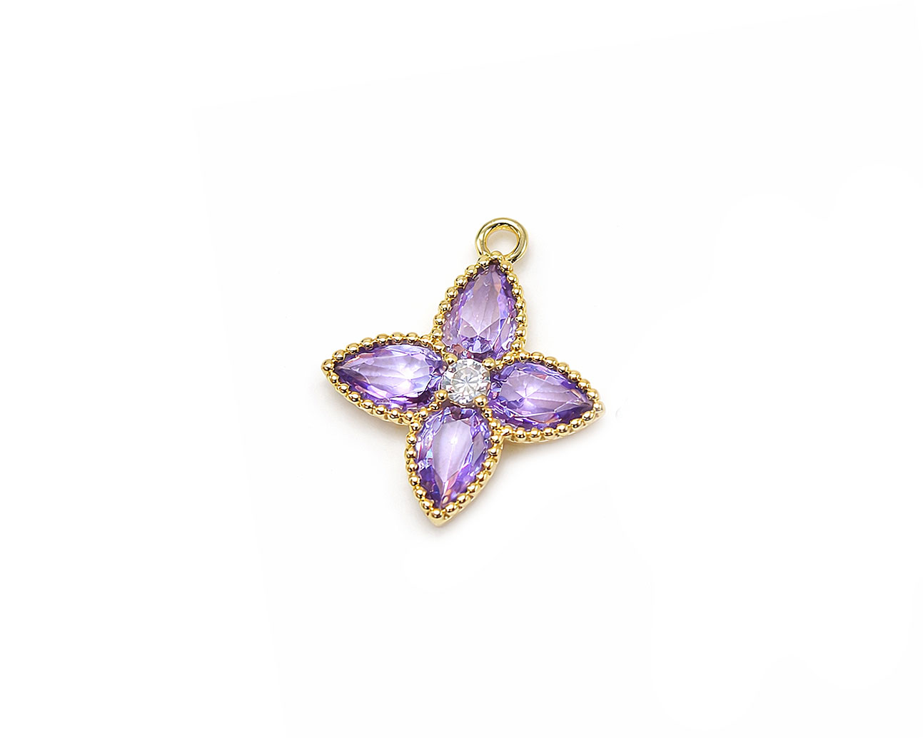 Подвеска "Сирень" лавандовая с кристаллом /позолоченная, 16 мм/