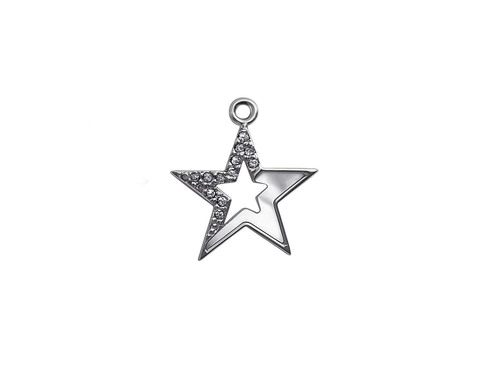 Подвеска "Superstar" инкрустированная фианитами с перламутром /серебристая, 15 мм/