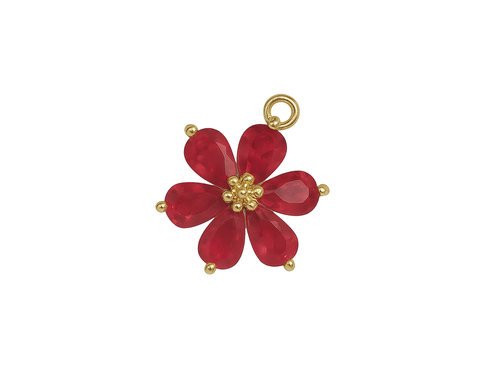 Подвеска "Цветок" с красной микроинкрустацией /позолоченная, 14*17 мм/