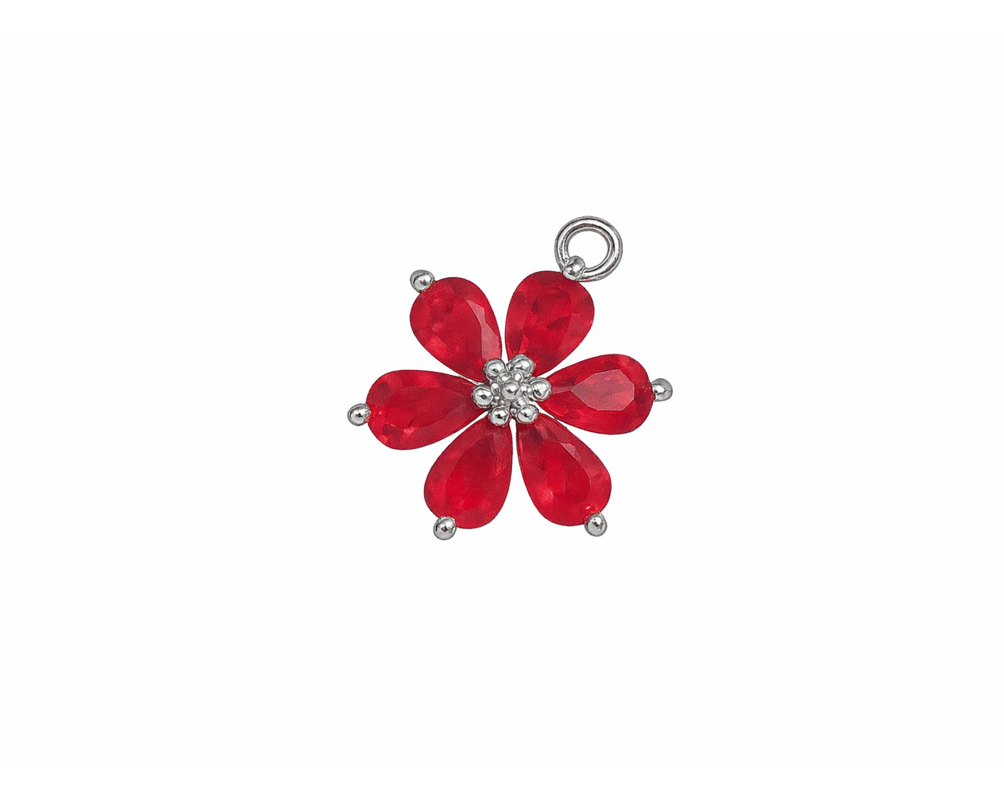 Подвеска "Цветок" с красной микроинкрустацией /серебристая, 14*17 мм/
