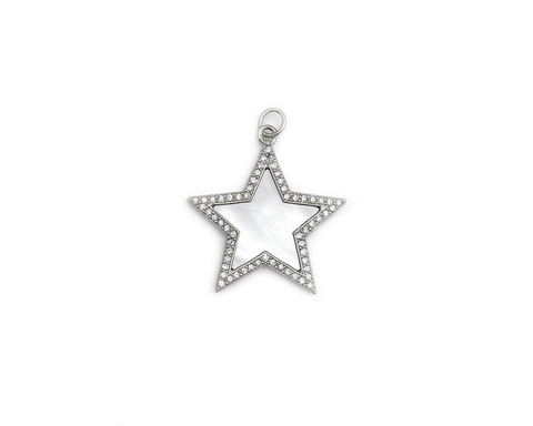 Подвеска "Звезда" инкрустированная фианитами с перламутром /серебристая, 28 мм/