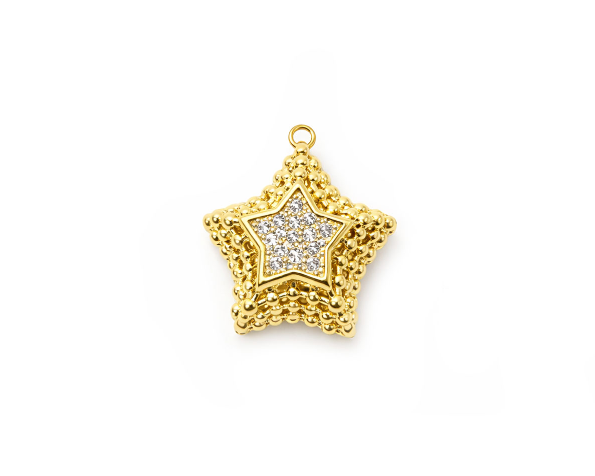 Подвеска "Звезда" объемная с микроинкрустацией /позолоченная, 22*22 мм/