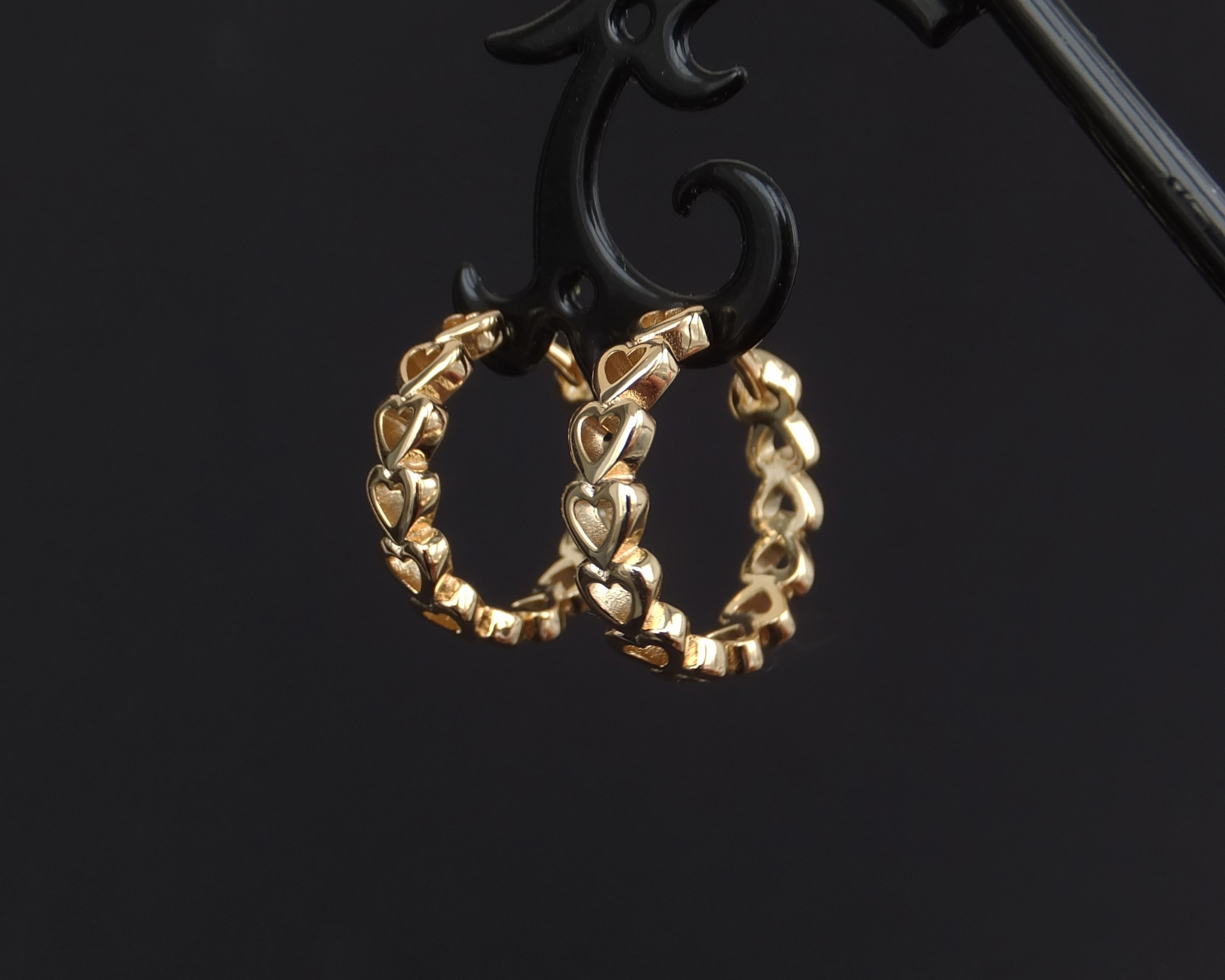 Пуссеты-кольца Сердечные позолоченные LUX /1 пара, 20 мм/
