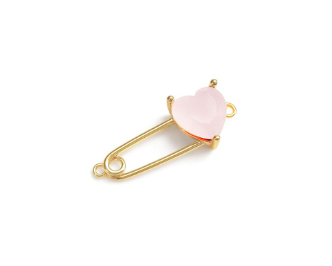 Коннектор Булавка с сердцем молочно-розовый /позолоченный, 11*28 мм/