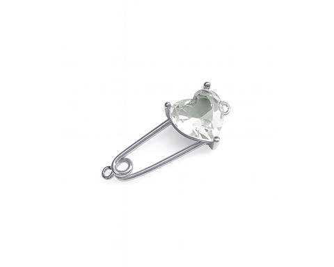 Коннектор Булавка с сердцем прозрачный /серебристый, 11*28 мм/