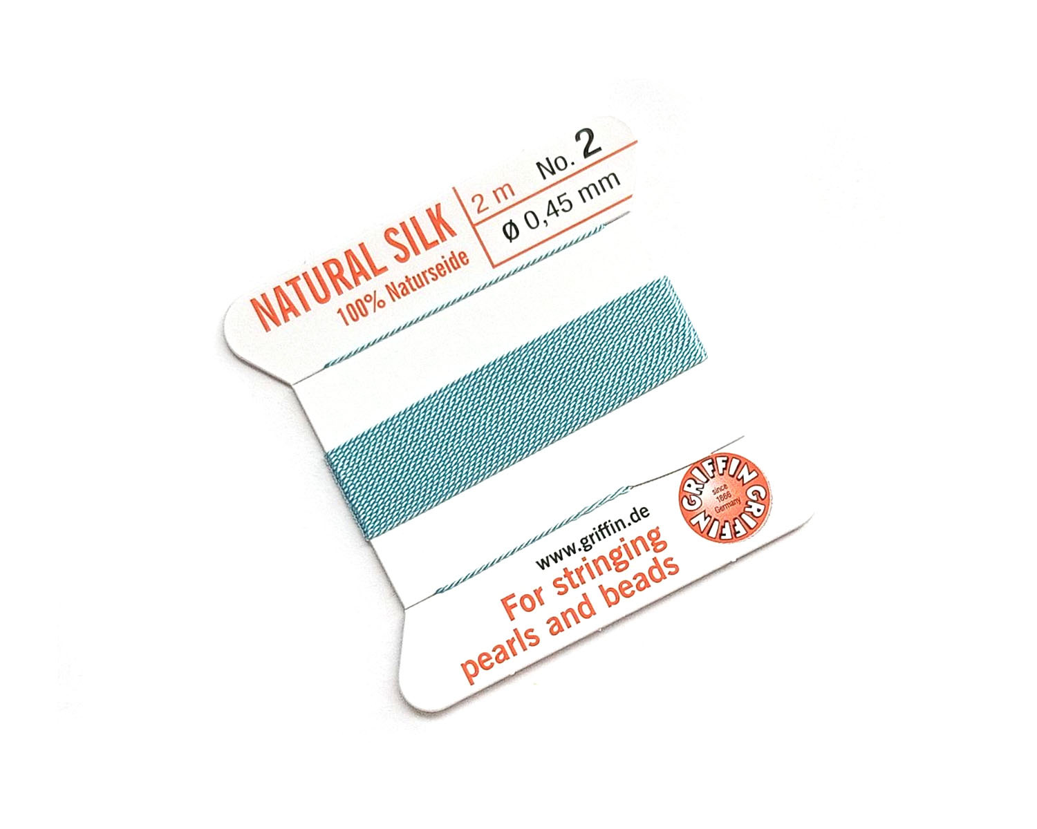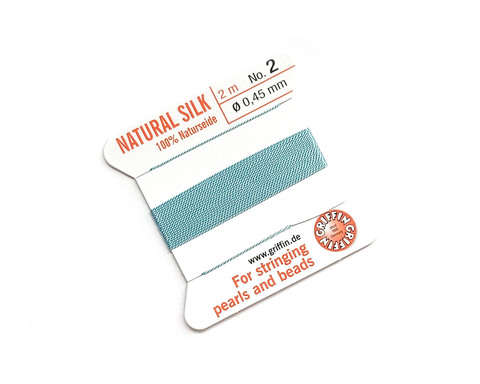 Нить шёлковая Griffin с иглой для жемчуга и бусин, бирюзовая №2 (0,45 мм)