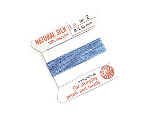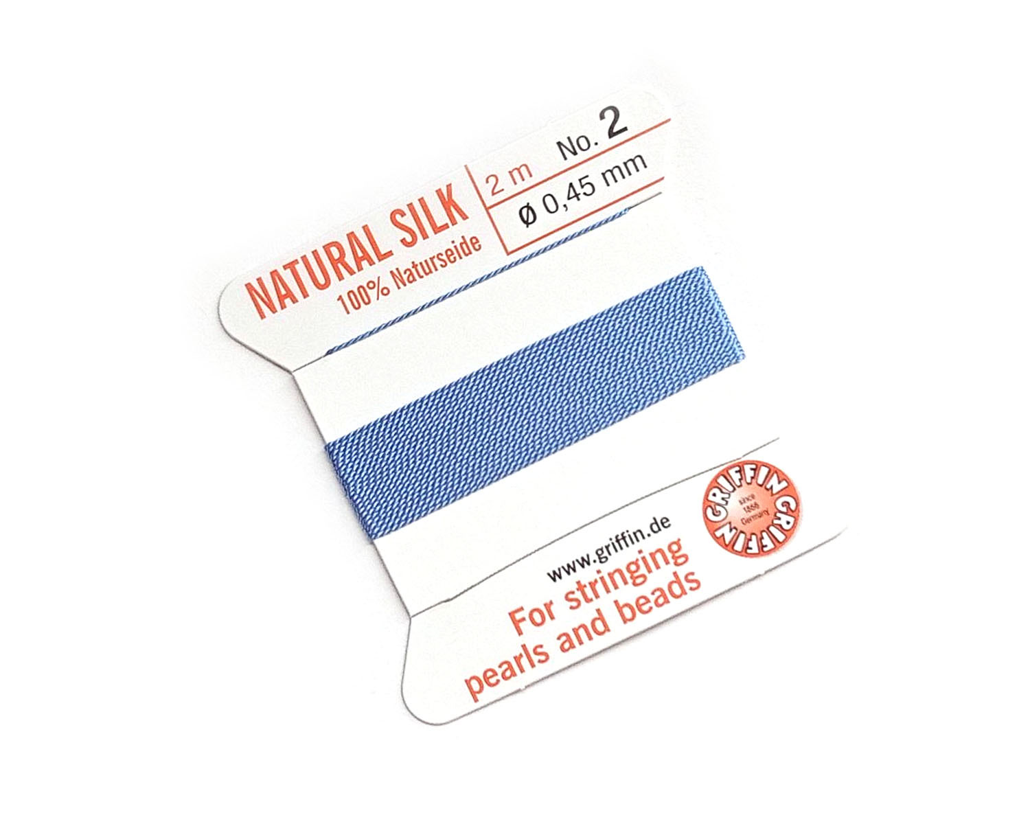 Нить шёлковая Griffin с иглой для жемчуга и бусин, голубая №2 (0,45 мм)