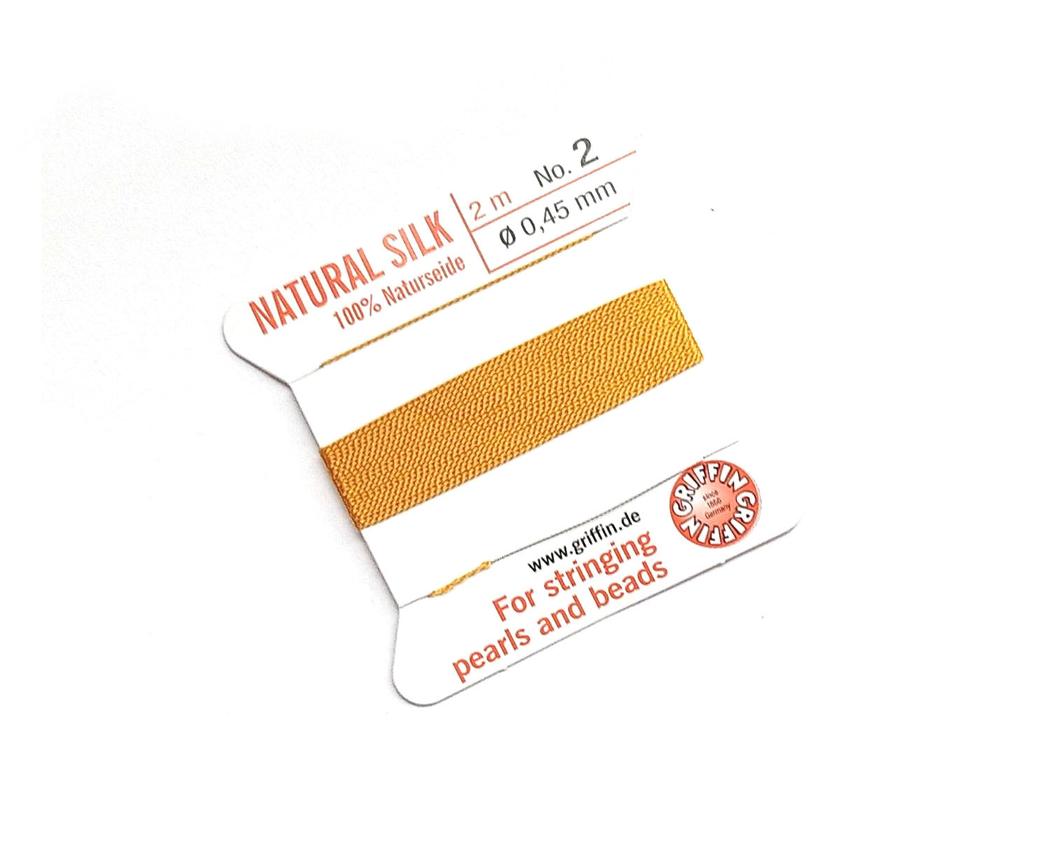 Нить шёлковая Griffin с иглой для жемчуга и бусин, янтарная №2 (0,45 мм)