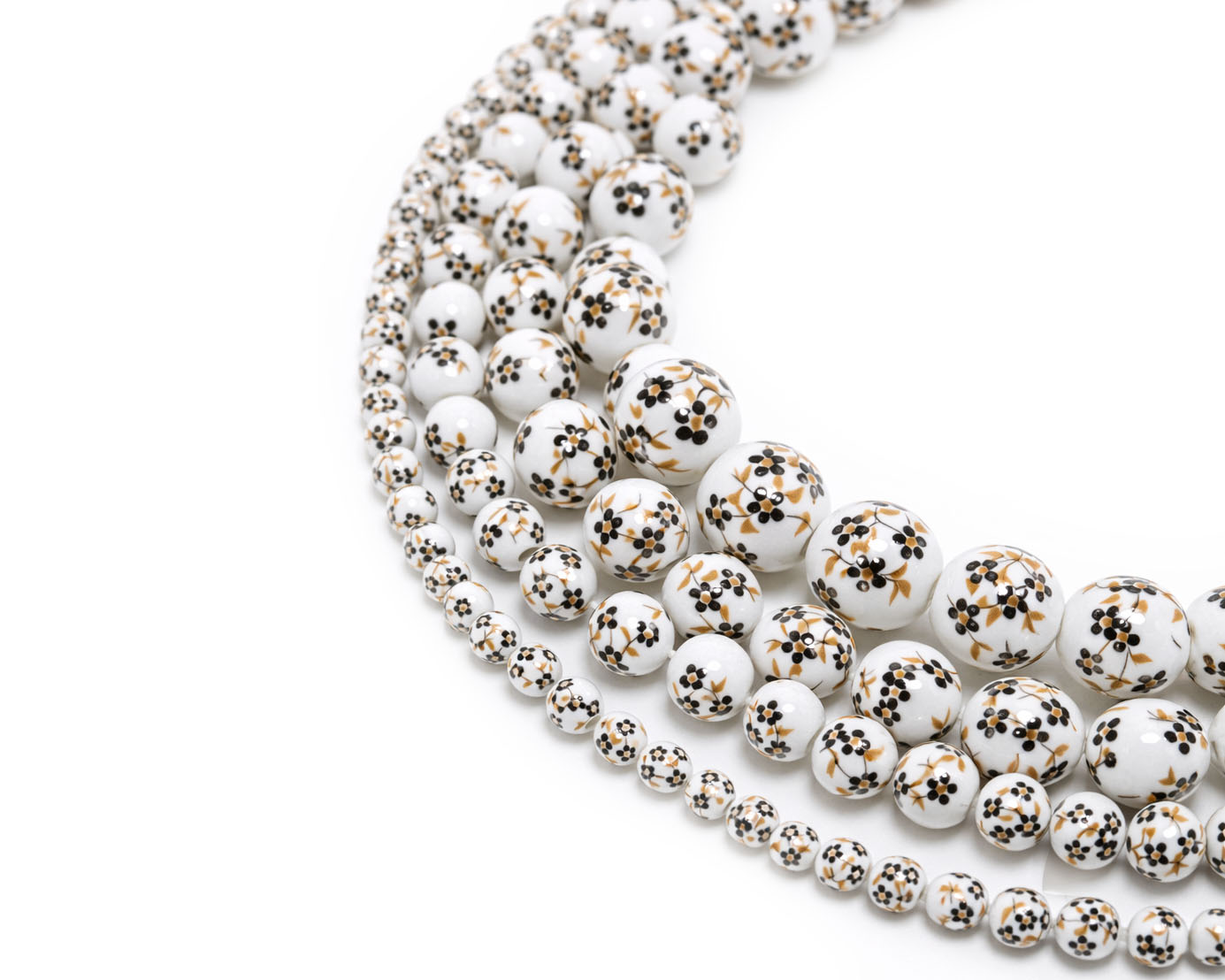 Бусина керамическая с шоколадными цветочками /шарик, 8 мм/