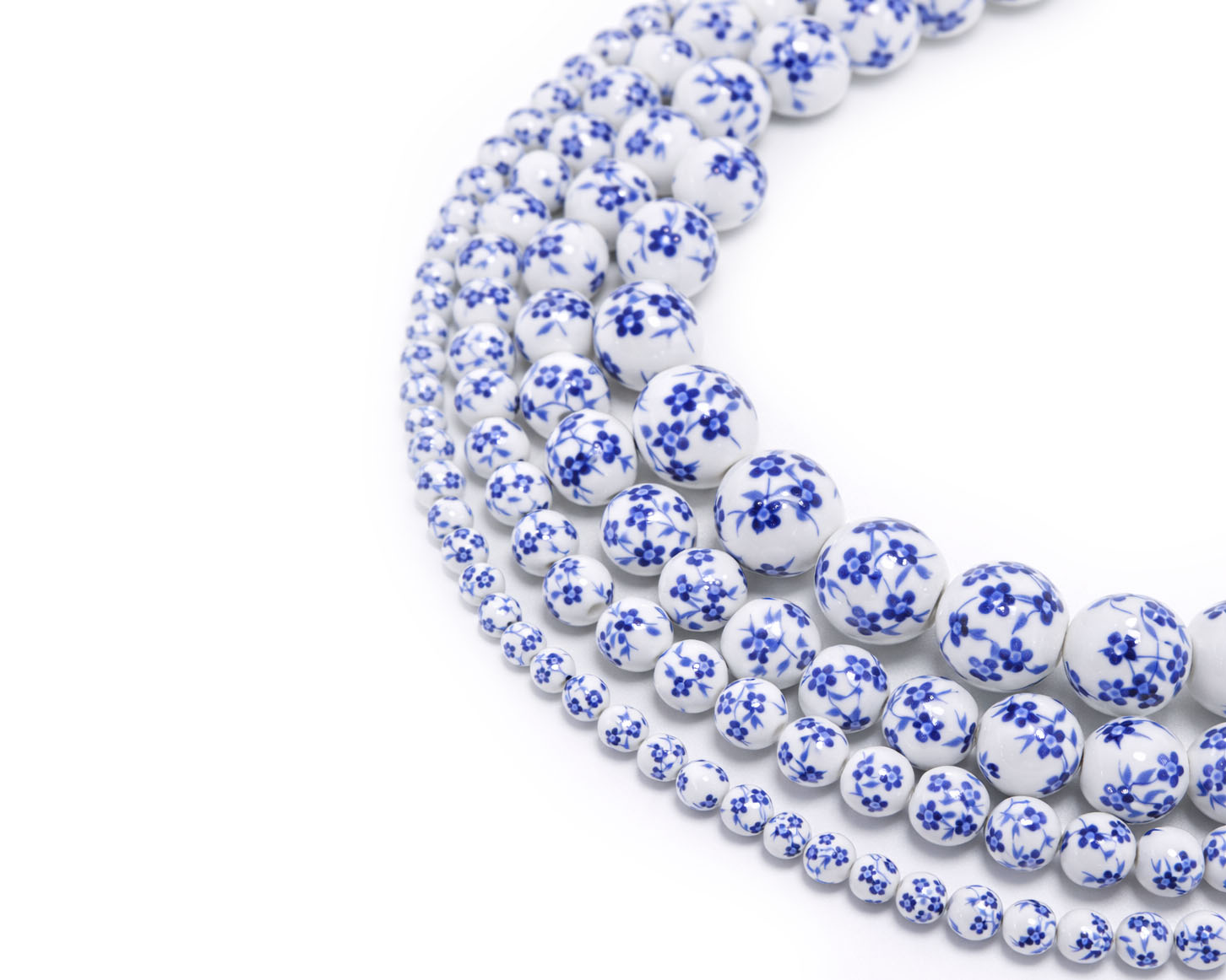 Бусина керамическая с синими цветочками /шарик, 8 мм/
