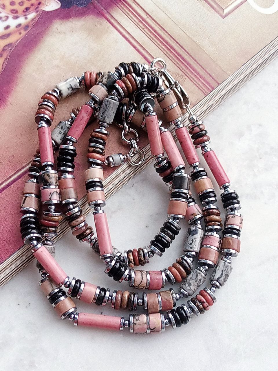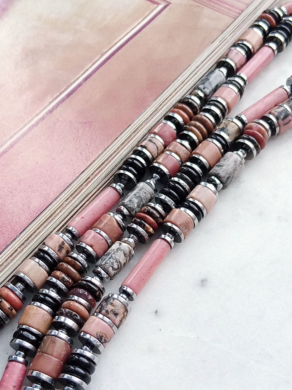 пыльный розовый💕 родонит, серая яшма и чёрный 🖤агат.