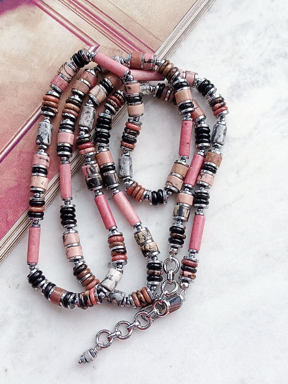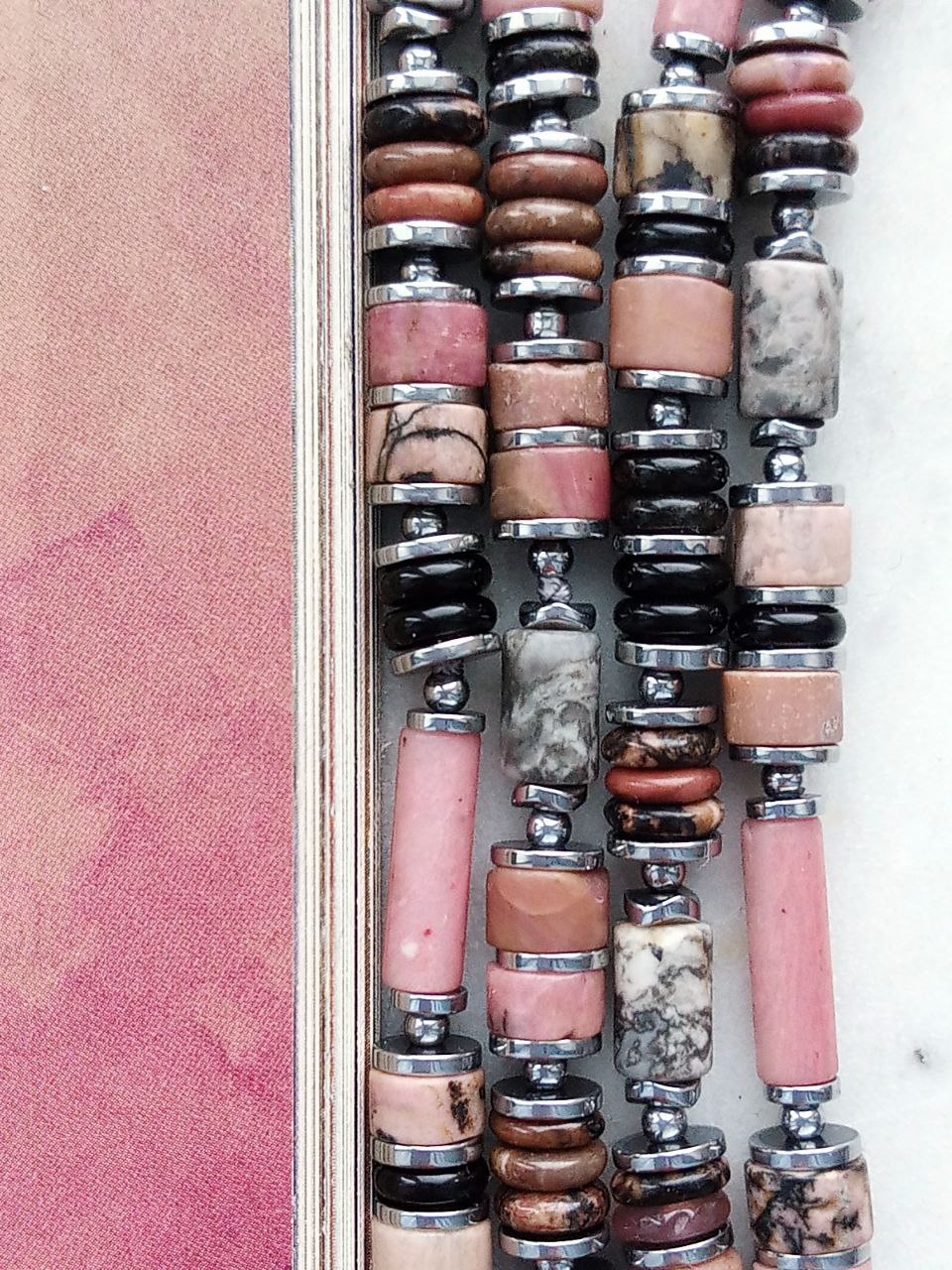 Длинное колье Родонит