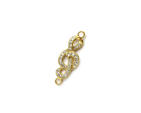 Коннектор "Скрипичный ключ" с микроинкрустацией /позолоченный, 10*27 мм/